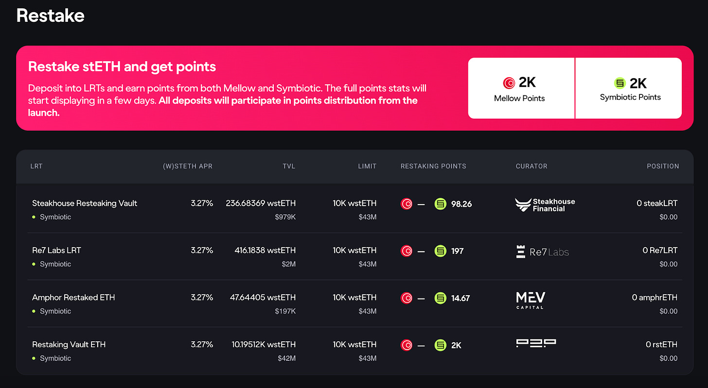 Points? - Yes, points. Both Symbiotic and Mellow points start occurring immediately. The dashboards to see your stats will not be fully accurate at first. But just so you know, both points are already accruing to stakers-depositors in these respective Mellow vaults. How many, at what speed, when new assets, when do rules change and other details - will be posted in the coming days. Keep an eye on socials to stay up-to-date.